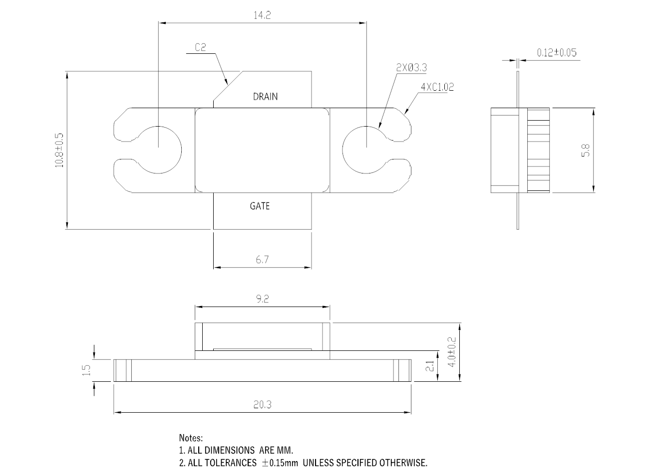 NI360 2 Lead flange Ceramic package(MSL3, 260℃ per JEDEC J-STD-020)